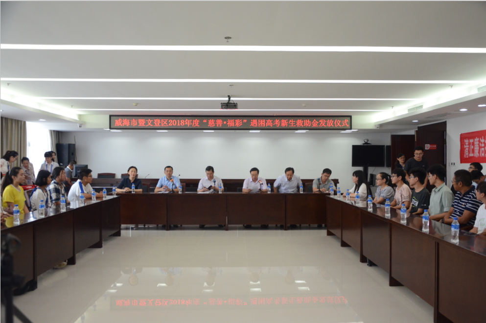 20日下午,威海市暨文登区2018年“慈善·福彩”遇困高考新生救助活动在文登区举行,威海市政府副市长、市慈善总会会长叶立耘,市民政局党委书记、局长、市慈善总会常务副会长栾波,市民政局调研员宋宝林,文...